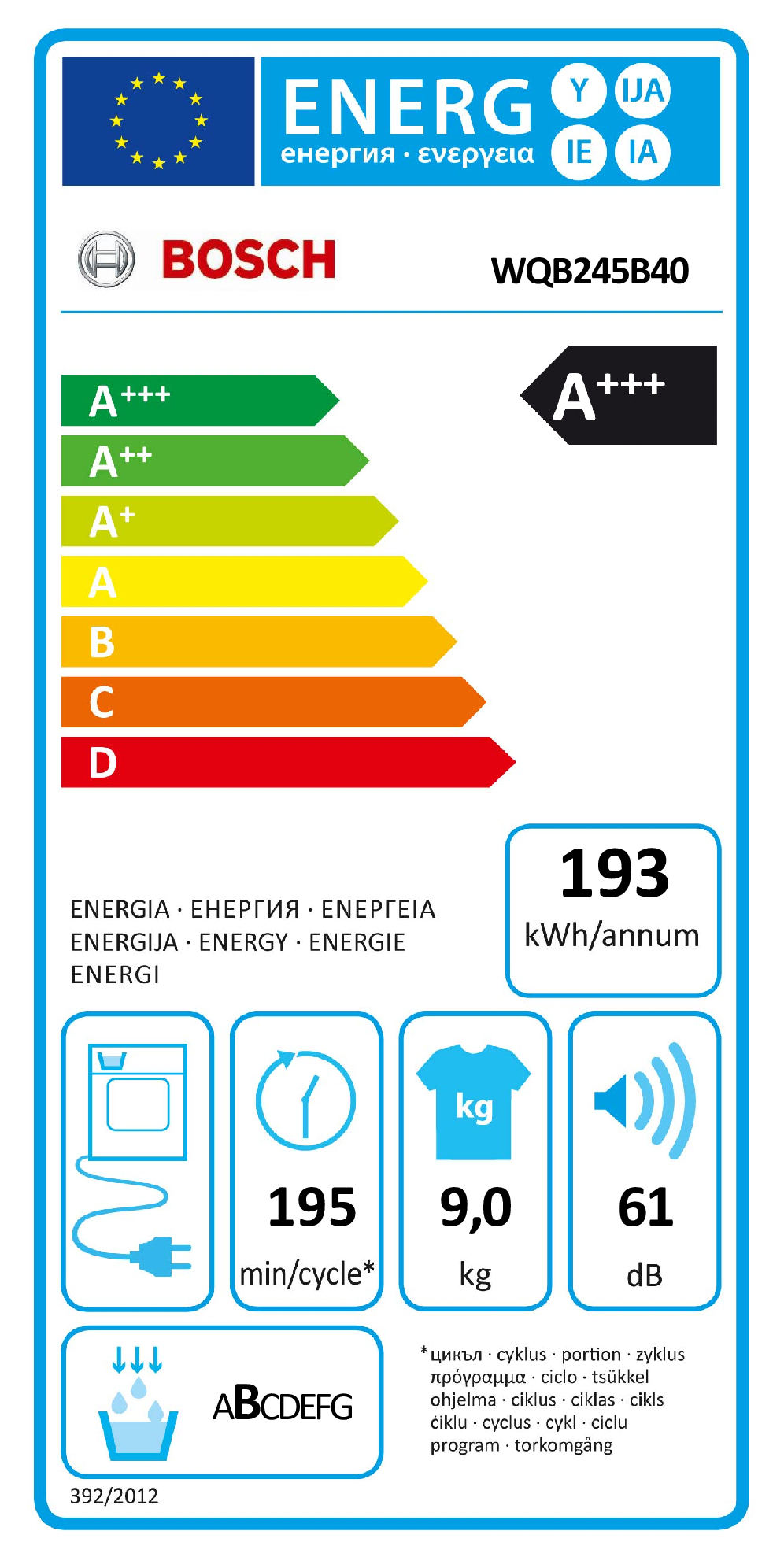 | Energieeffizienzskala : | A+++ bis D |